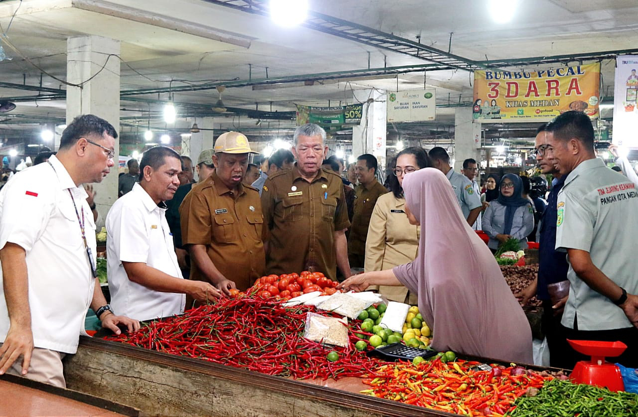 disrupsi.id – Medan | Satuan Tugas (Satgas) Pangan Sumatera Utara (Sumut) melakukan monitoring sejumlah harga kebutuhan pokok di Pasar Petisah, Jalan Kota Baru 3, Kelurahan Petisah Tengah, Kecamatan Medan Petisah, Selasa (2/4).