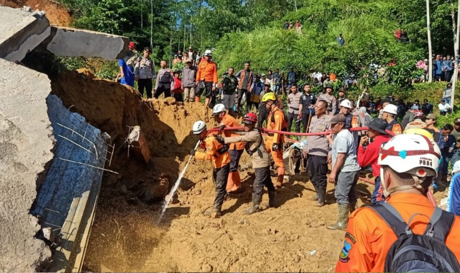 “Badan Penanggulangan Bencana Daerah (BPBD) Kabupaten Garut dan tim gabungan masih berada di lokasi untuk melakukan penanganan dan melakukan pembersihan material longsor,” urainya