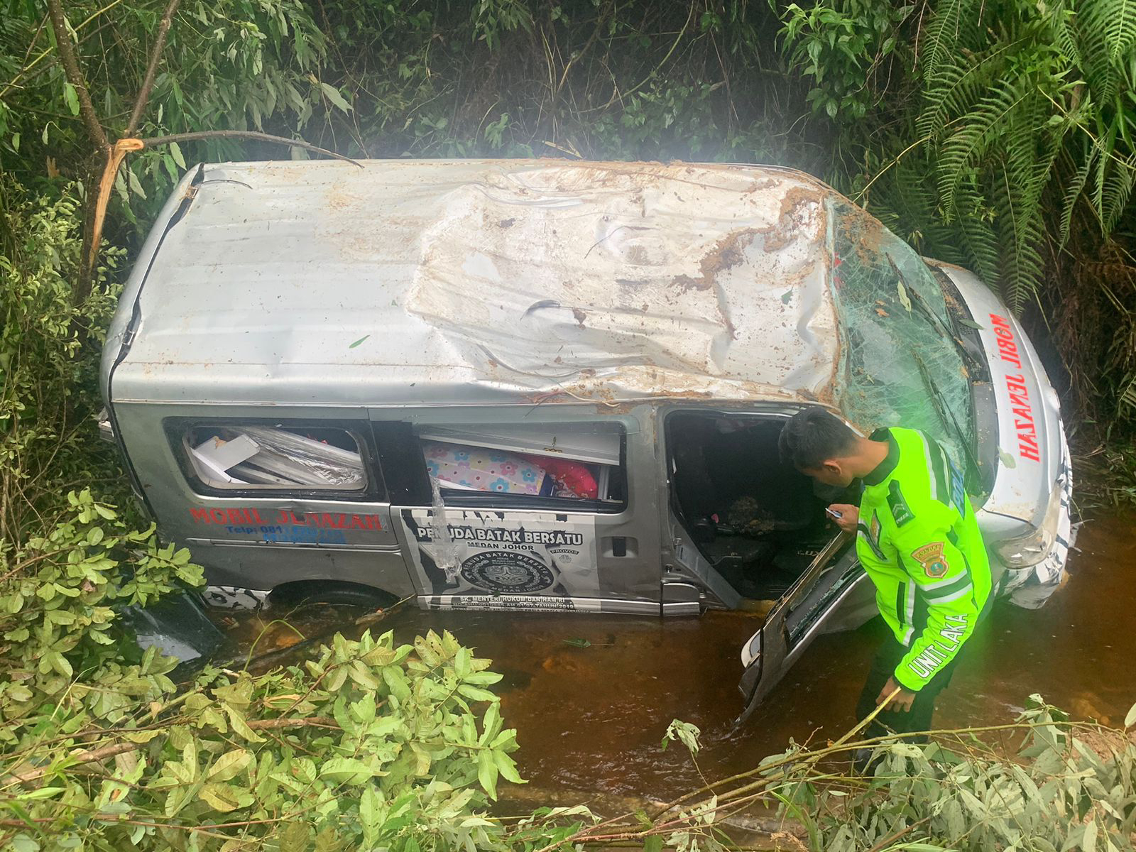 Ambulans Bawa Jenazah dan Tiga Penumpang Masuk Jurang di Samosir