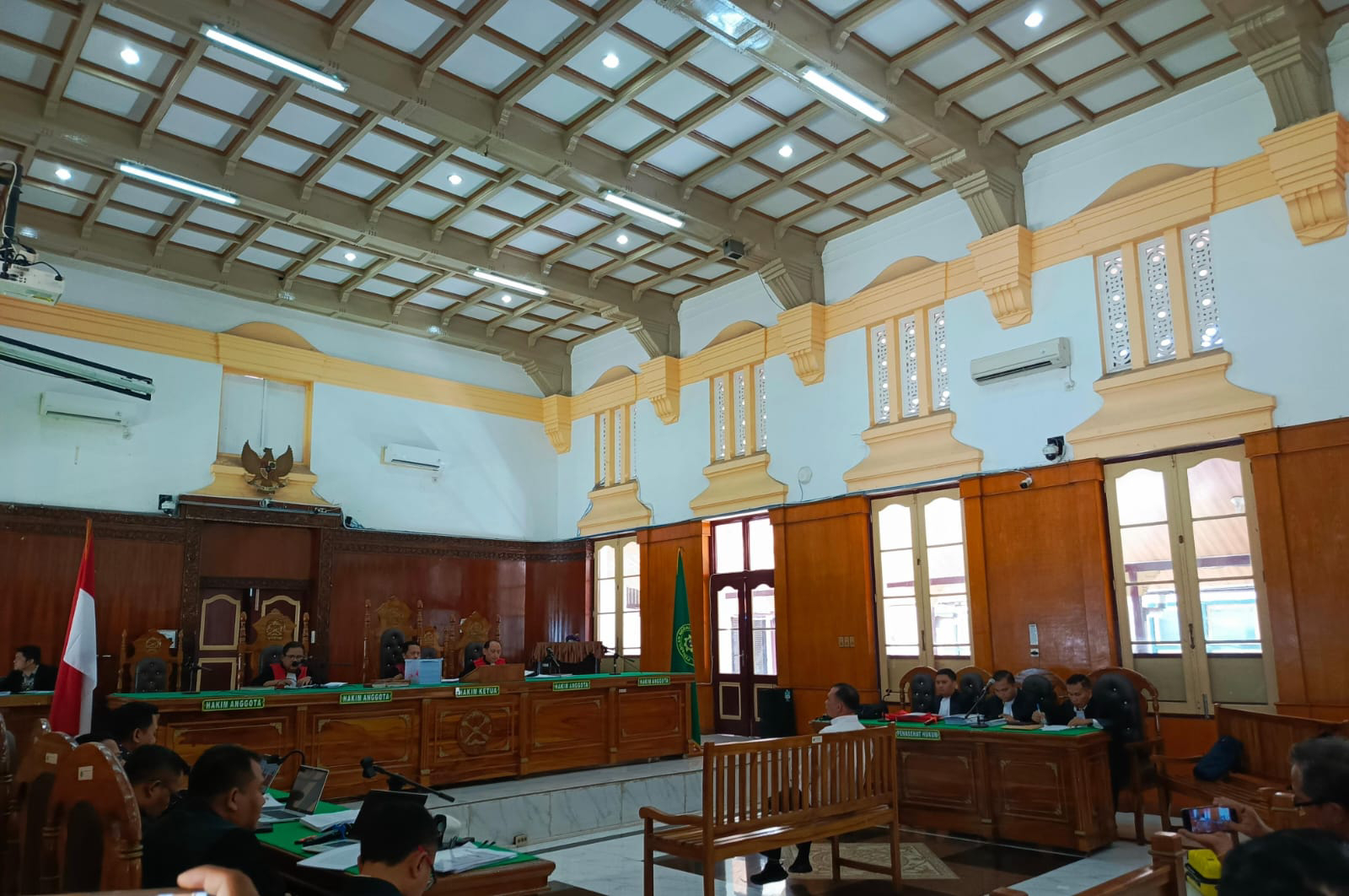 “Baik, sudah dengar tadi dakwaannya. Atas hal itu apa mengajukan keberatan atau eksepsi,” tanya hakim As’ad.