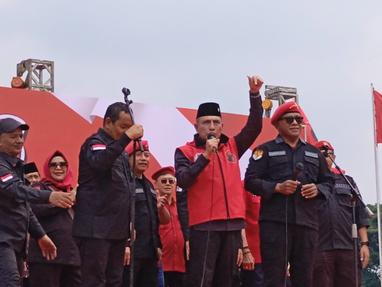 “Pak Edy tadi kami sambut bapak dengan salam merdeka. Dan sebagai seorang prajurit militer pasti tau maksudnya. Hari ini kita pertaruhkan jiwa raga kita untuk Indonesia. Bukan soal bergabung banyak atau sedikit. Tapi sedikit yang menunjukkan kualitas pada negara, ” ujarnya.