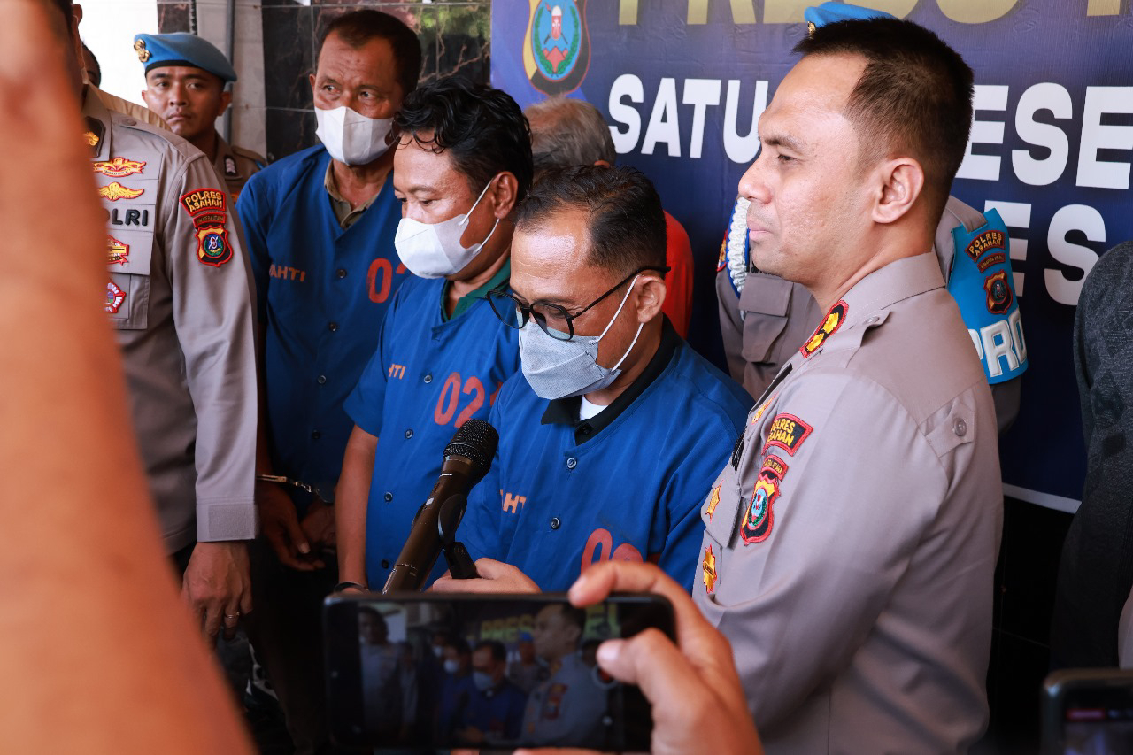 Setelah dilakukan pendalaman, tambahnya, tiga orang ditetapkan sebagai tersangka. Sedangkan lima orang lainnya DE, S, T, H dan DA belum dapat ditetapkan sebagai tersangka.
